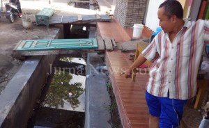 ”Itu dulu dikerjakan kira-kira bulan 11 dan waktu pengerjaan saat hujan dan yang sekarang dilihat jebol itu dulu ada genangan air. Ternyata sekarang malah jadi jebol,” ungkap Supartin (48) saat ditemui dilokasi, Kamis (8/6/2017).