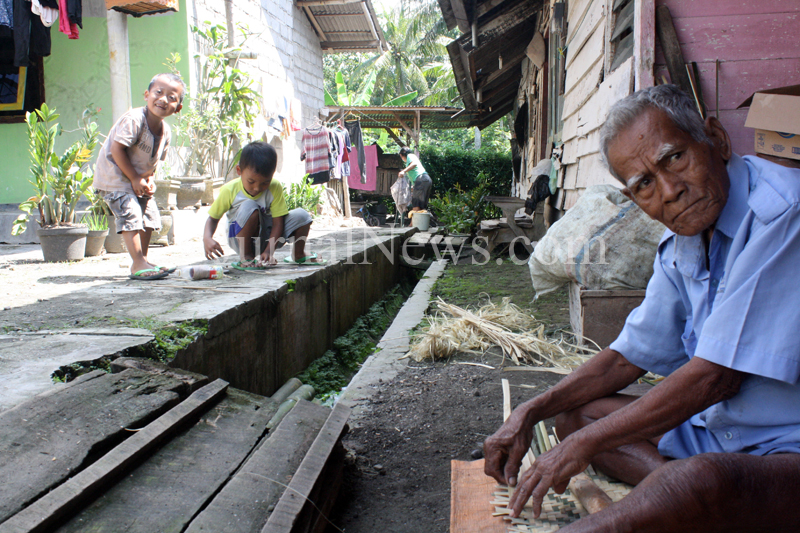 “Sudah tua mau kerja apalagi, punya ketrampilan ya dipergunakan,” katanya sembari merapatkan bilah bambu yang dianyamnya, Senin (7/8/2017).