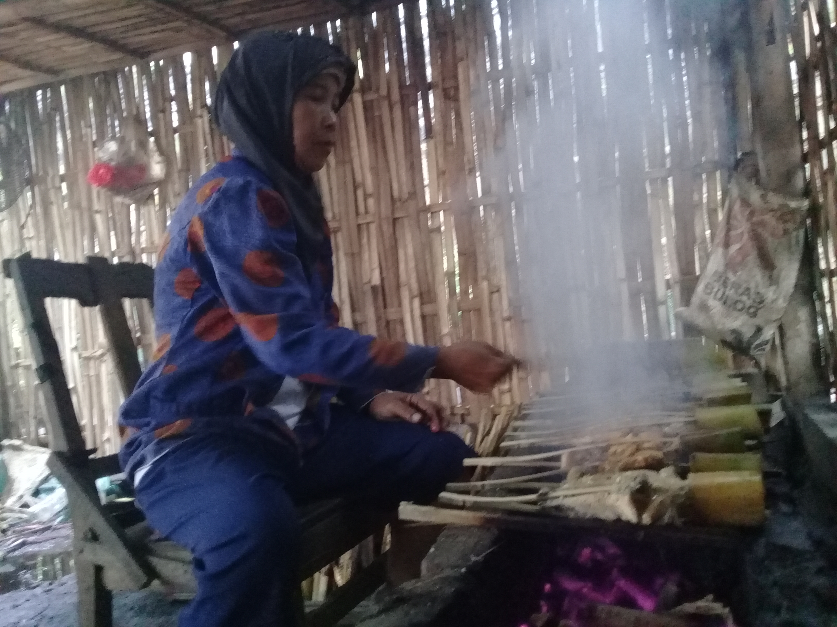 Proses pemanggangan (diasap), dibantu oleh istri dan saudaranya, Pengasapan memakan waktu hampir seharian penuh, mulai mencari ikan segar sampai ikan siap jual, Diawali jam 05.00 sampai 19,00 dan keesokan harinya baru dibawa kepemesan juga dijual sendiri kepasar.