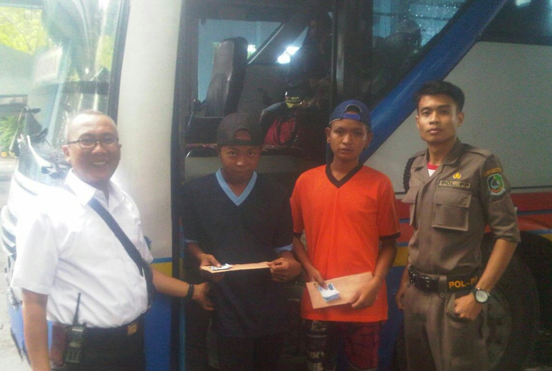 BANYUWANGI – Dua anak jalanan (Anjal) yang terjaring dalam sebuah operasi penegakan Perda Nomor 11 Tahun 2014 tentang ketertiban dan ketentraman masyarakat (Trantib) di wilayah lampu merah Desa Benculuk, Kecamatan Cluring, Kabupaten Banyuwangi, Rabu (29/11/17).