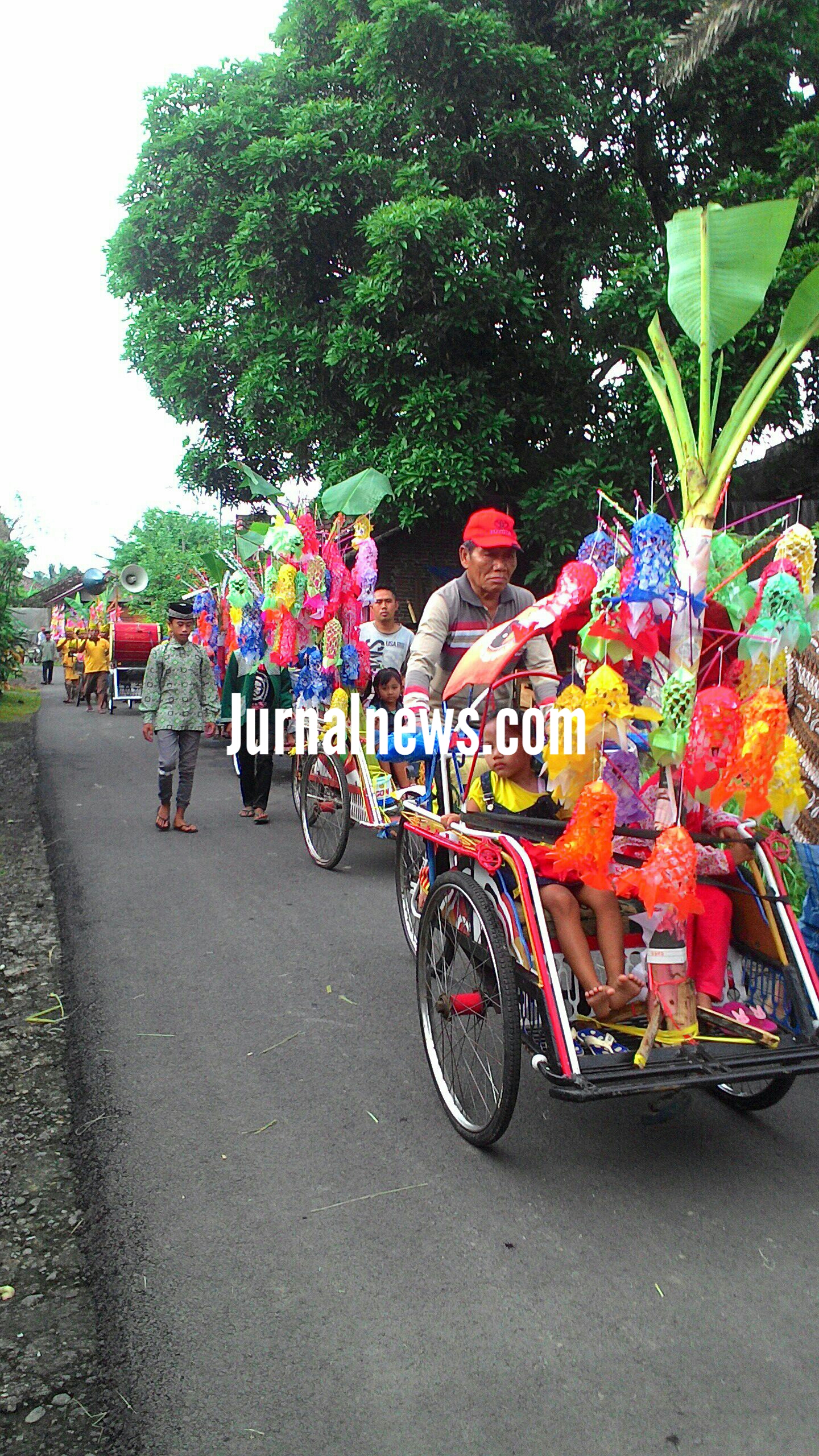 Mengarak telur yang sudah dihias menyerupai pohon yang berbuah lebat itu dimulai dari halaman masjid Nurul Huda lalu memutar kampung krajan dan kembali ke halaman masjid.