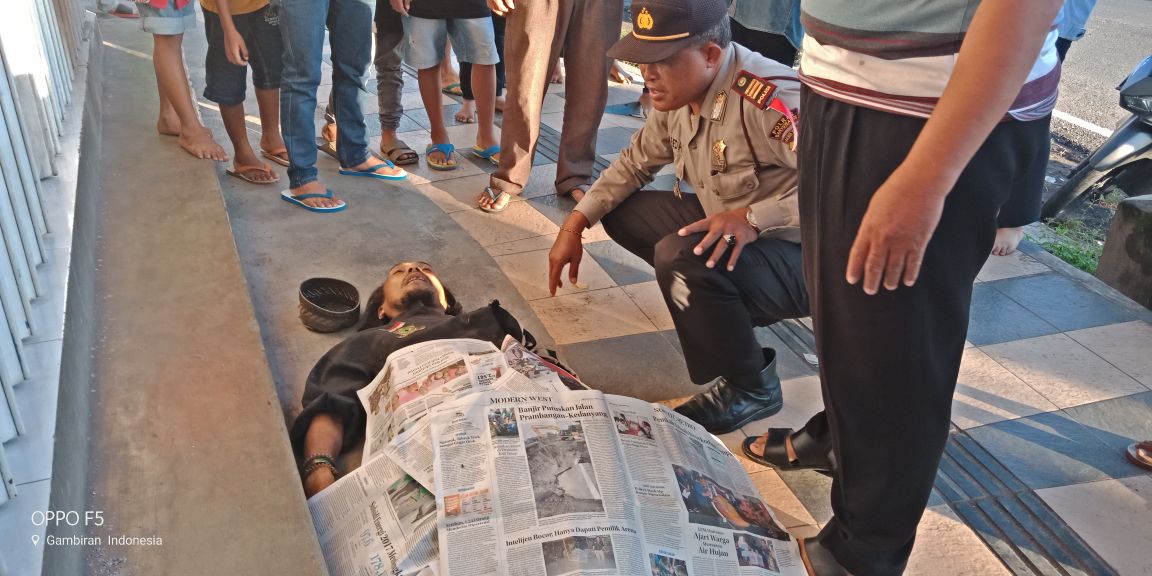 Saat itu korban tergeletak ditrotoar dianggap hanya tidur, setelah didekati oleh tukang ojek bersama warga dan dilihat mukanya pucat ternyata ia sudah meninggal, lalu tukang ojek bersama warga lain yang ada dilokasi melapor ke Polsek Gambiran.