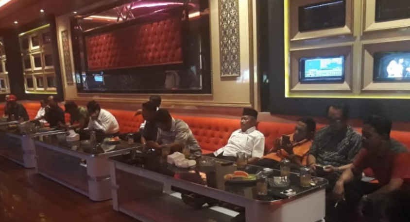 Belum diketahui pasti mereka sedang berbuat apa, namun mereka sangat menikmati suwasana didalam room mirip tempat karaoke itu.