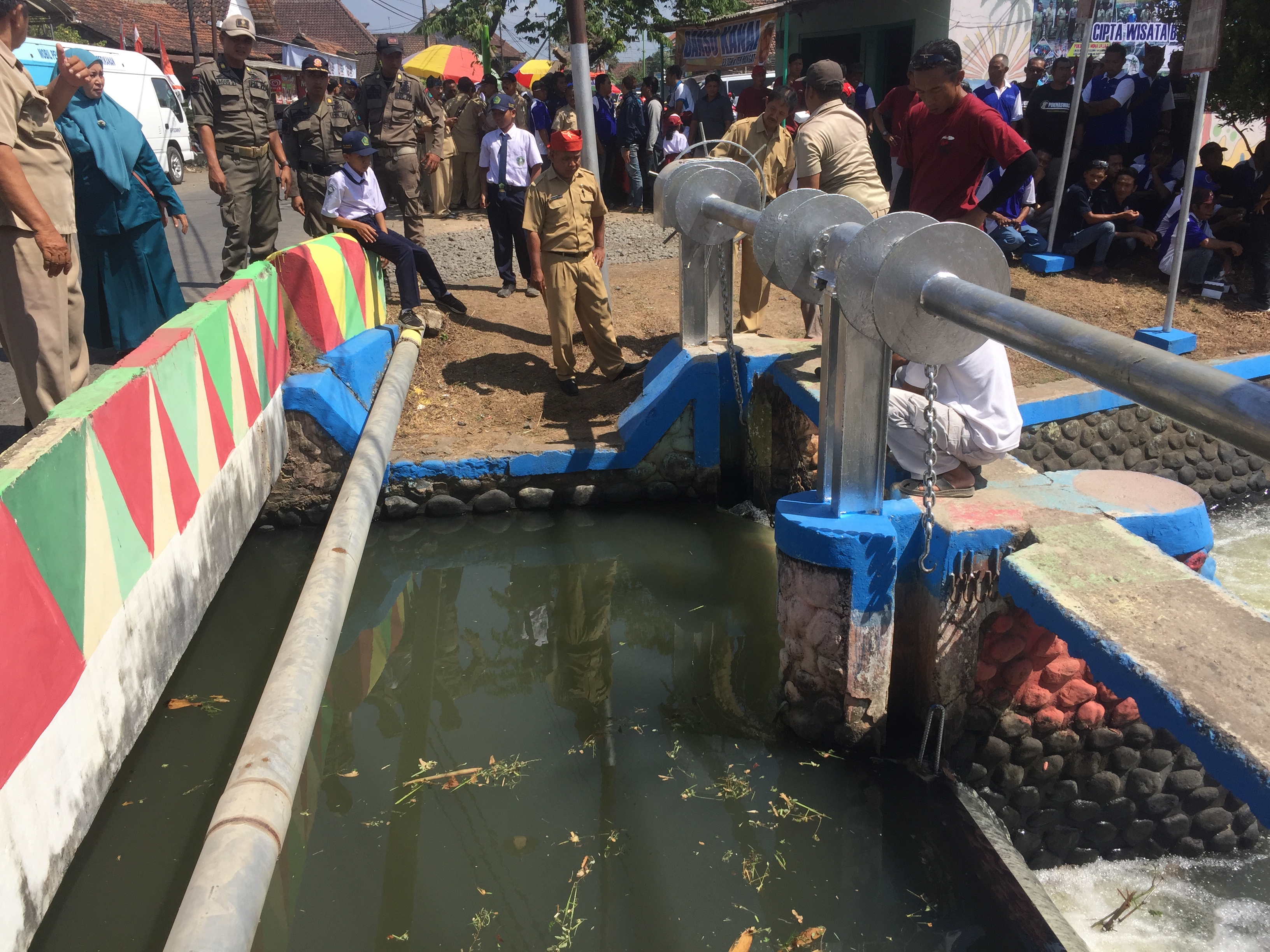 “Kita tidak tahu mas, ini kemungkinan ada yang bersih – bersih di bibir sungai.” Terang salah satu petugas pengairan.