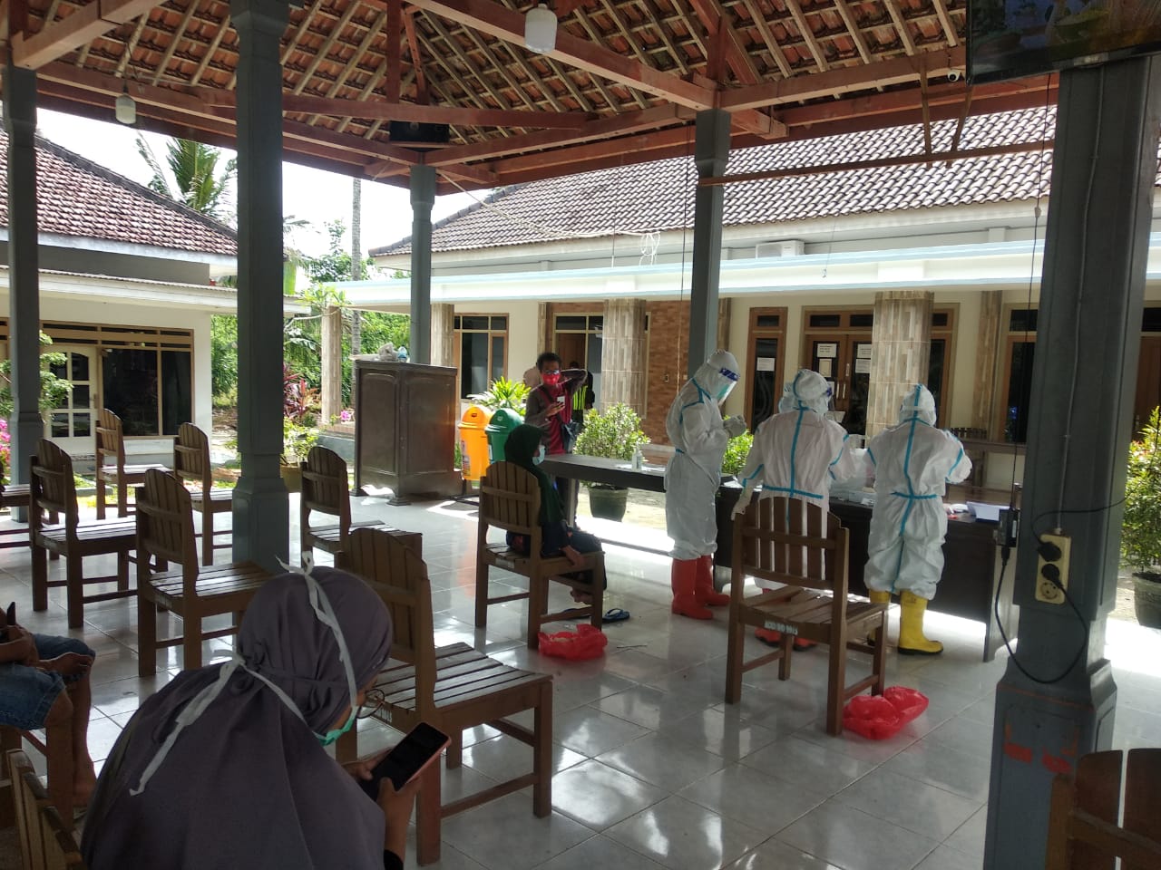 BANYUWANGI- Setelah beberapa orang terpapar Covid-19 Gugus Covid-19 Banyuwang kembali melakukan tes Swab di balai Desa Sarongan, Kecamatan Pesanggaran, Kabupaten Banyuwangi, Senin (25/1/2021).