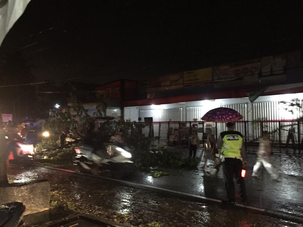 Dan langsung pohon trembesi yang Tumbang di bersihkan yang ada di tengah jalan raya. Karena tidak menghambat bagi pengguna kendaraan roda dua dan empat yang saat melintas.