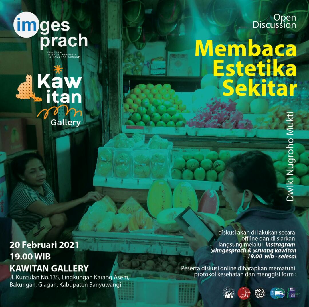 Galery Kawitan  berkesempatan menjadi tuan rumah acara Diskusi bertemakan Membaca Estetika Sekitar Forum ini dikemas dengan  Komunikatif. Selain sebagai forum diskusi yang membahas bagaimana membaca estetika sekitar, acara ini ditujukan untuk mempererat silaturahmi antara pelaku seni rupa, budayawan , pelaku seni tari, seni teater . Gesah bersama budayawan Banyuwangi di Galeri Kawitan . Ada sesuatu yang menarik  puluhan pemerhati budaya dan pelaku seni Banyuwangi berkumpul sambil gesah malam itu,  mereka juga berdiskusi tentang berbagai hal seputar sosial – budaya dan filosofi masyarakat Banyuwangi, Sabtu Malam Minggu (20/02/21)