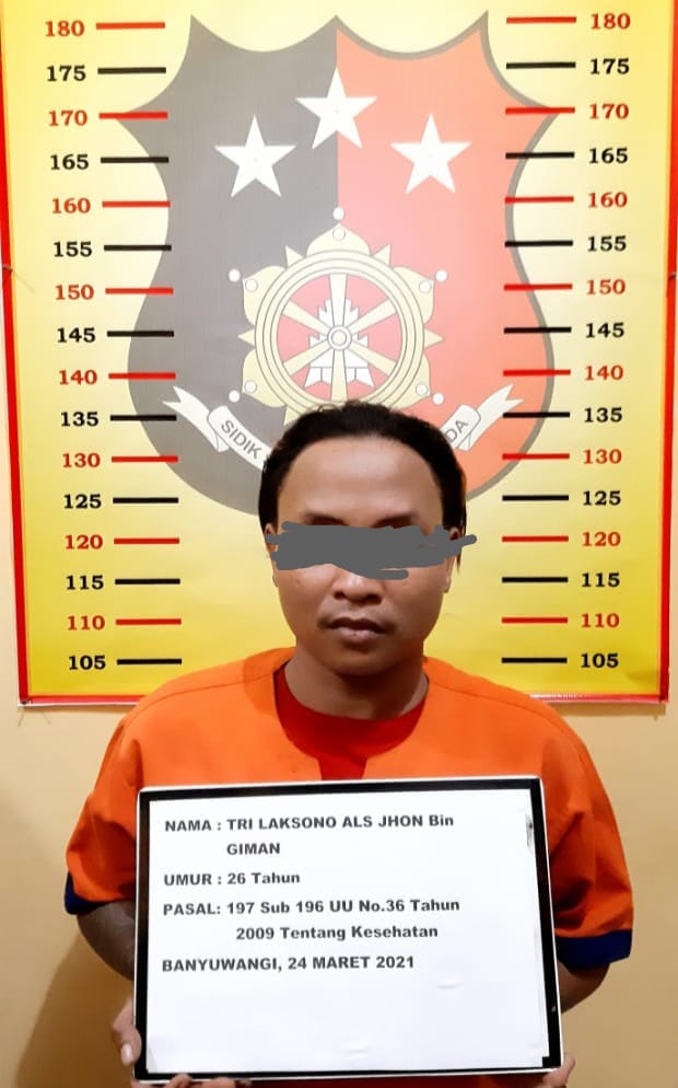 “Tersangka Tri Laksono (26) Dusun Sumberwaru Rt 001 Rw 002 Desa Tamanagung, Kecamatan Cluring, Kabupaten Banyuwangi.”Kata Kapolsek Cluring AKP Bejo Madrias.