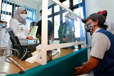 Bupati Banyuwangi Ipuk Fiestiandani, Kepala Kesyahbandaran dan Otoritas Pelabuhan (KSOP) Kelas III Tanjungwangi Benyamin Ginting, dan pemangku kepentingan terkait meresmikan gerai pelayanan tersebut, Rabu (31/3/2021).