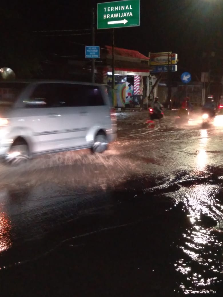 “Banjir kabeh Pak, niki motor kulo mogok, “kata salah satu pengendera sepeda motor yang tidak mau disebutkan namanya.
