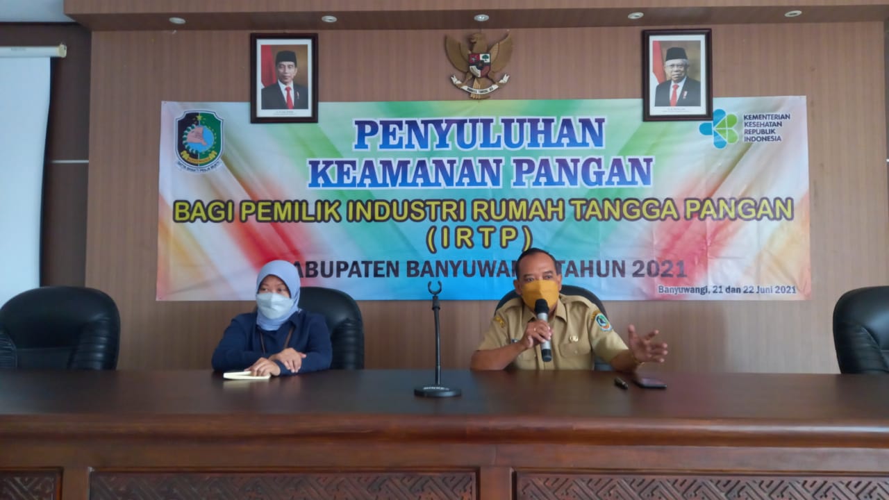 Banyuwangi: Penyuluhan Keamanan Pangan Angkatan II Tahun 2021 diikuti 50 pelaku UMKM berlangsung dengan prokes ketat di Aula Dr. M. Rasyad Oesman Dinas Kesehatan Kabupaten Banyuwangi Senin (21-22/6/2021).