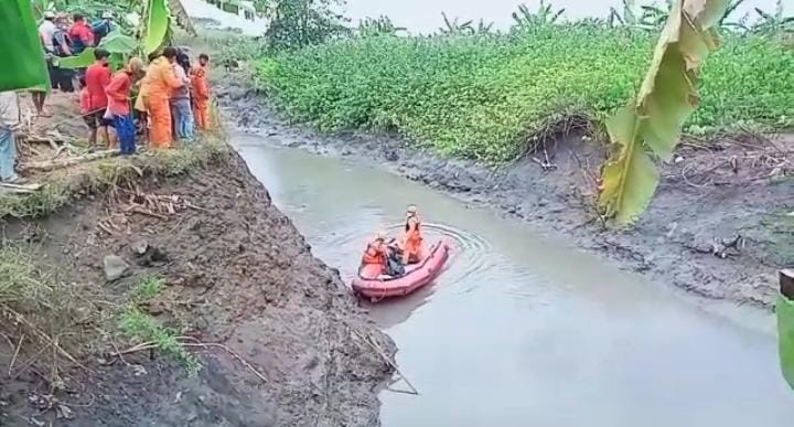 BANYUWANGI – Korban yang hanyut di dalam sungai curah gulung Dusun Krombang Kebun Tebu, Desa Seneporejo, Kecamatan Siliragung, Banyuwangi. Berhasil di temukan oleh Tim SAR gabungan. Kamis. (28/07/2021).