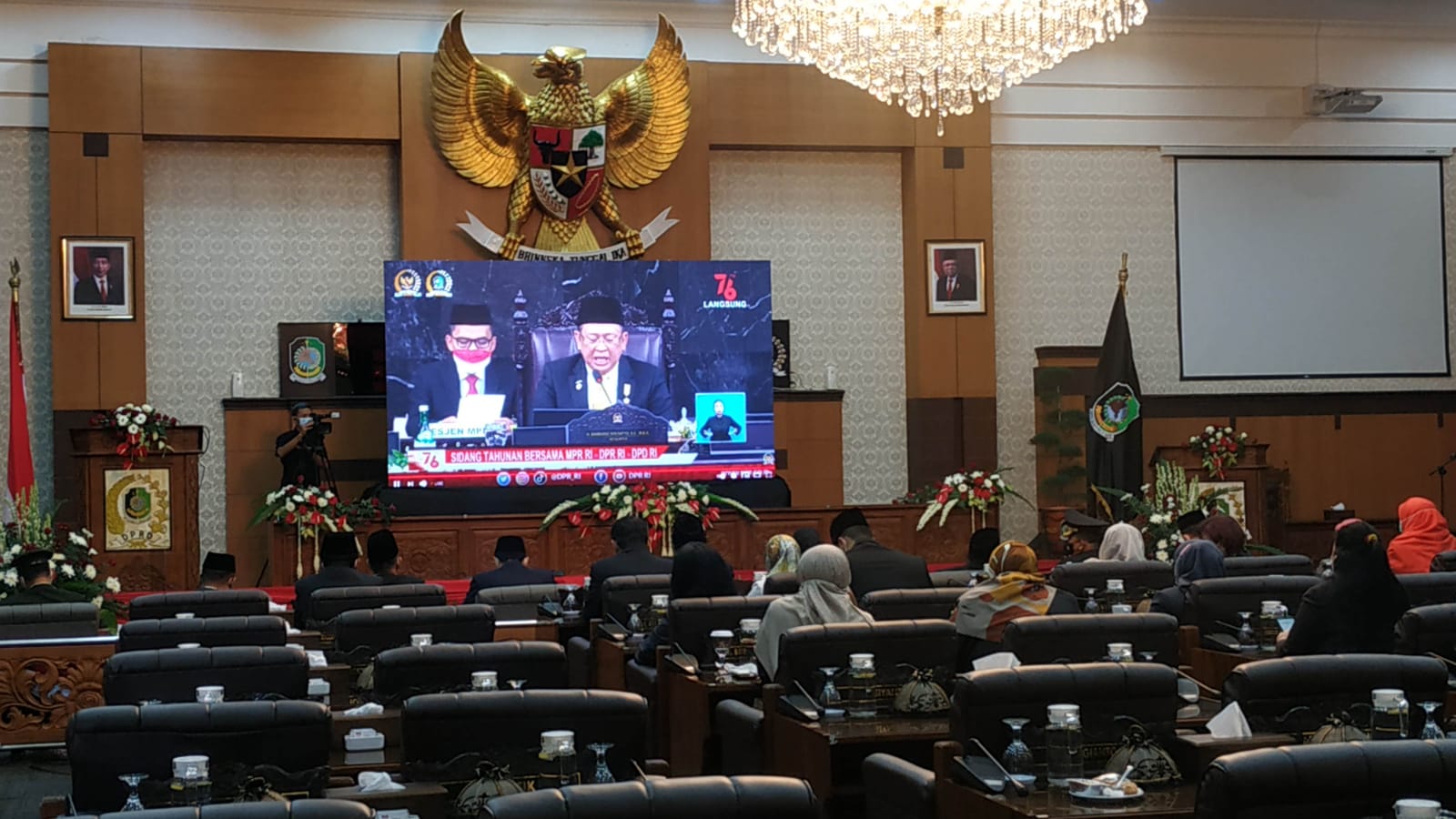 BANYUWANGI – DPRD Kabupaten Banyuwangi gelar rapat paripurna dengan agenda mendengarkan pidato kenegaraan Presiden dakam rangka HUT ke 76 Kemerdekaan Republik Indonesia, Senin’ (16/08/2021).