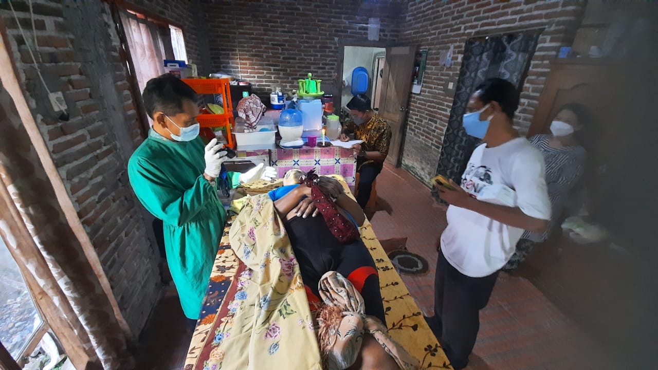 Atas pristiwa tersebut dan laporan pihak keluarga anggota Polsek Gambiran bergegas kerumah korban.