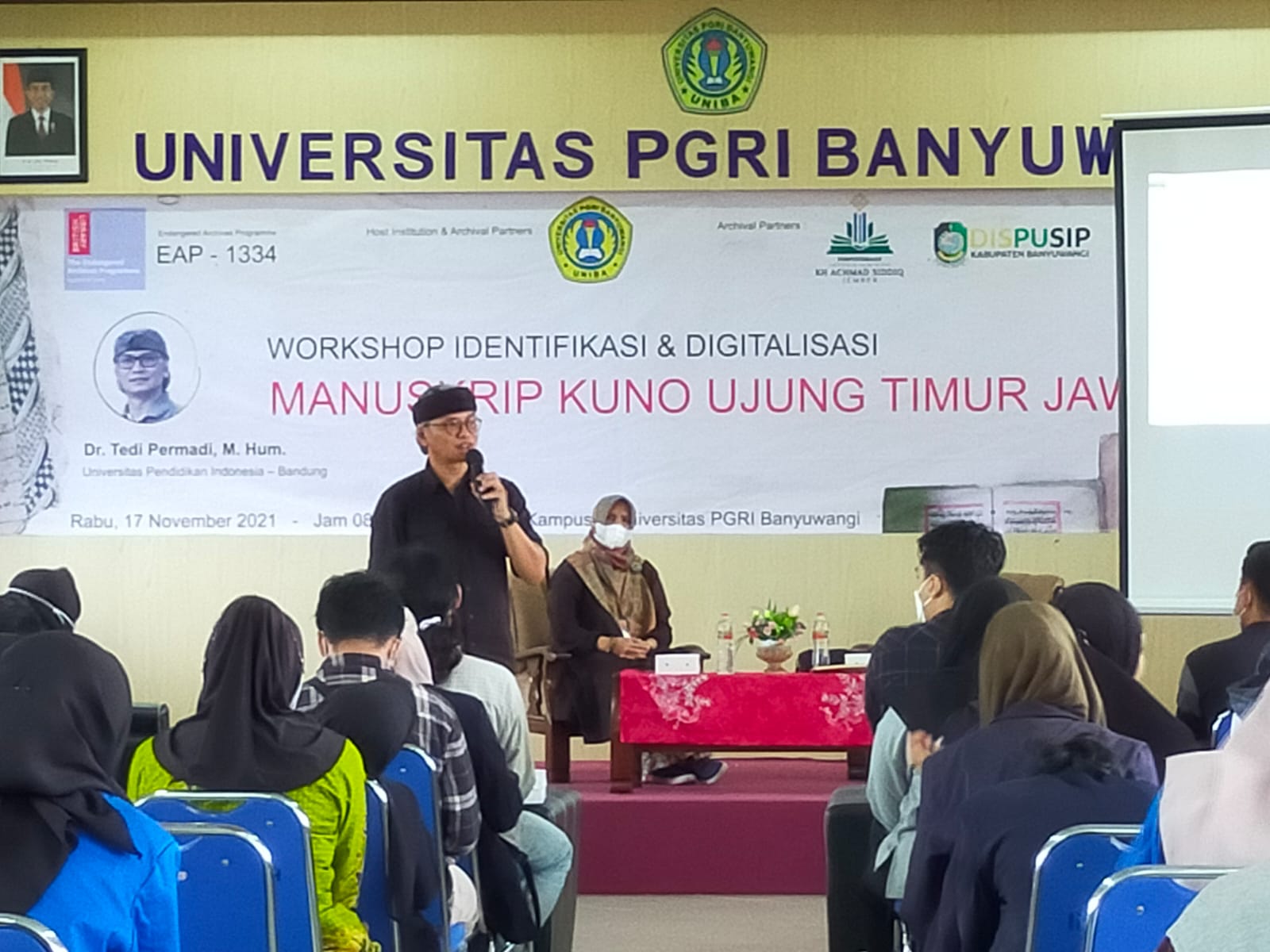 Telah dilaksanakan Workshop Identifikasi dan Digitalisasi Manuskrip Kuno Ujung Timur Jawa di Kampus B Universitas PGRI Banyuwangi (UNIBA) oleh Tim EAP 1334 dengan Host Institution Universitas PGRI Banyuwangi dan Achival Partners Perpustakaan UNIBA, Perpustakaan Universitas Islam Negeri (UIN) KH. Achmad Siddiq (KHAS) Jember, serta Perpustakaan Daerah Kabupaten Banyuwangi (17/11/21).