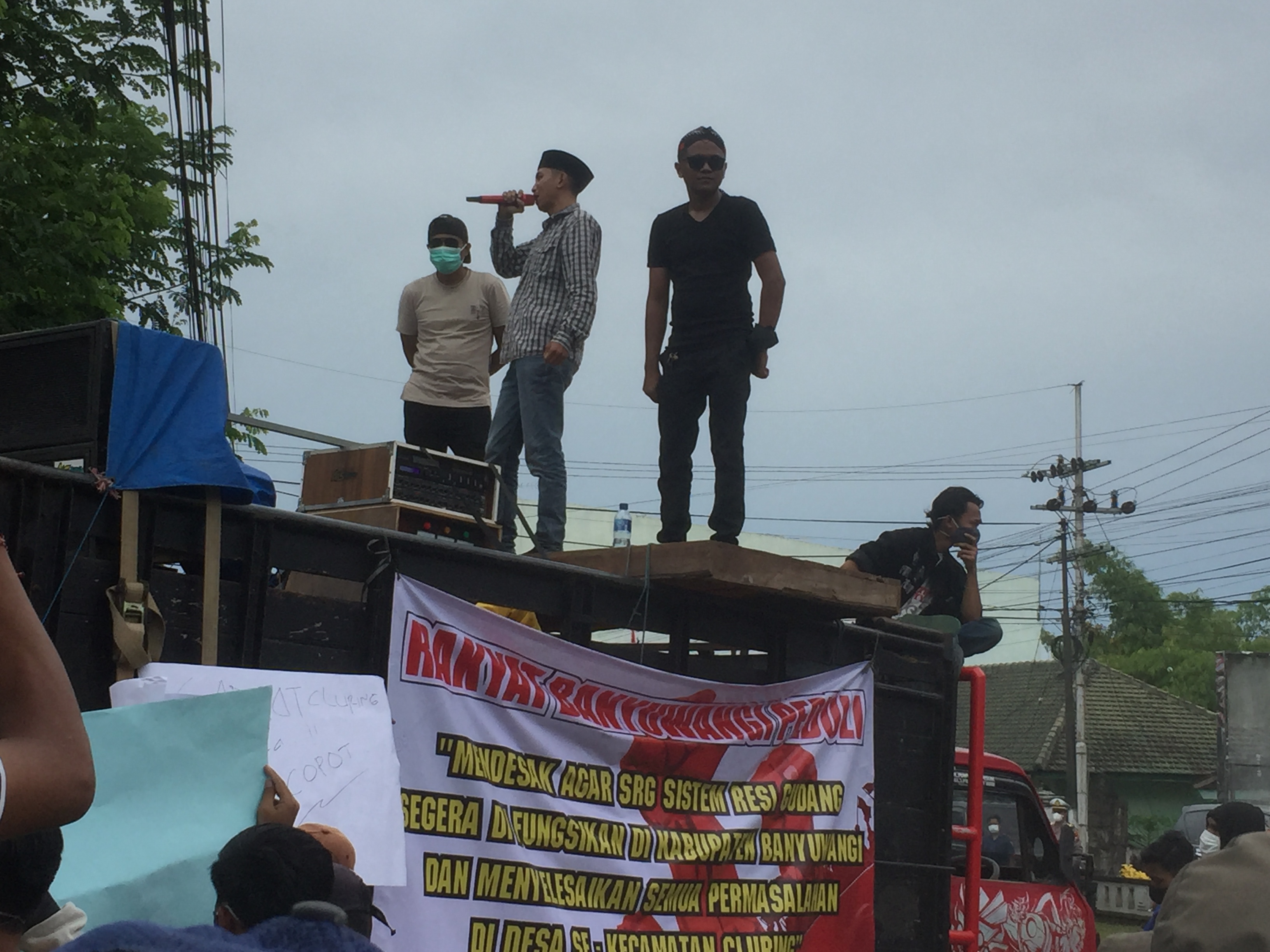 BANYUWANGI – Warga mengatas namakan Rakyat Banyuwangi Peduli (RBP) mengelar demo didepan kantor Kecamatan Cluring pada mereka menuntut Gedung pada Senin 21 Februari 2022. Rabo (23/02/2022).