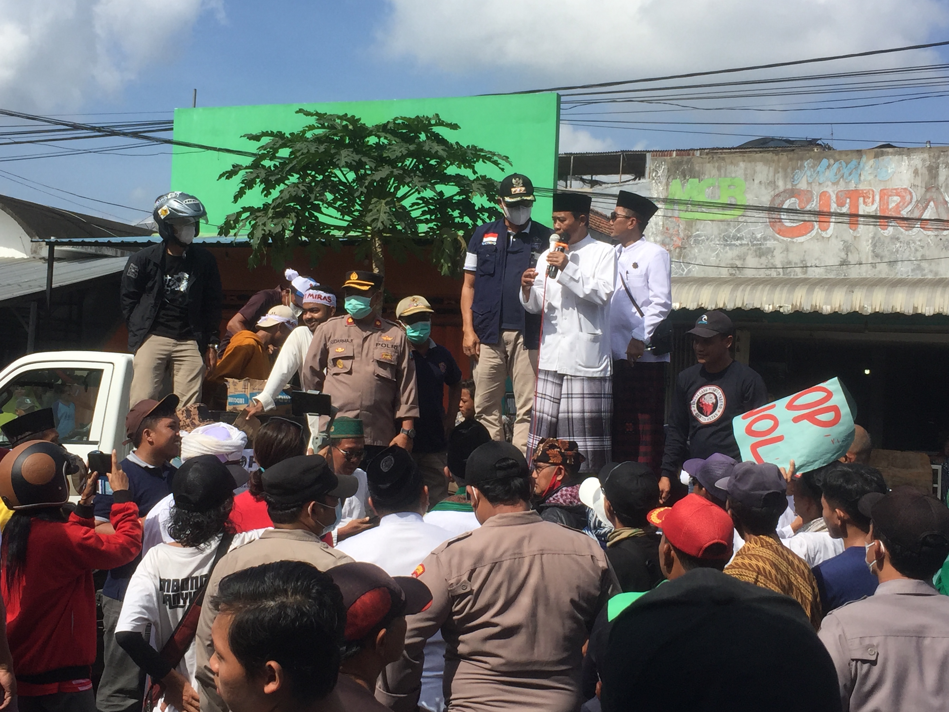 Salah satu orator yakni Kyai Muhdor Atim, menyebut pesan sejumlah orang itu tidak ada muatan politik hanya ingin toko penjual minol ditutup.