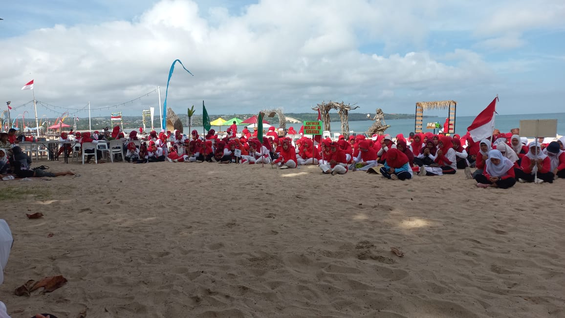 MENYONGSONG KEMERDEKAAN RI KE-77 TH, HARI PRAMUKA KE 61, HARI JADI MANGUPURA KE-13, PC MUSLIMAT NU KABUPATEN BADUNG MENGADAKAN UPACARA BENDERA, PAWAI, SENAM, PERLOMBAAN DAN DOA BERSAMA, SERTA MEMBERSIHKAN PANTAI DI KEDONGANAN
