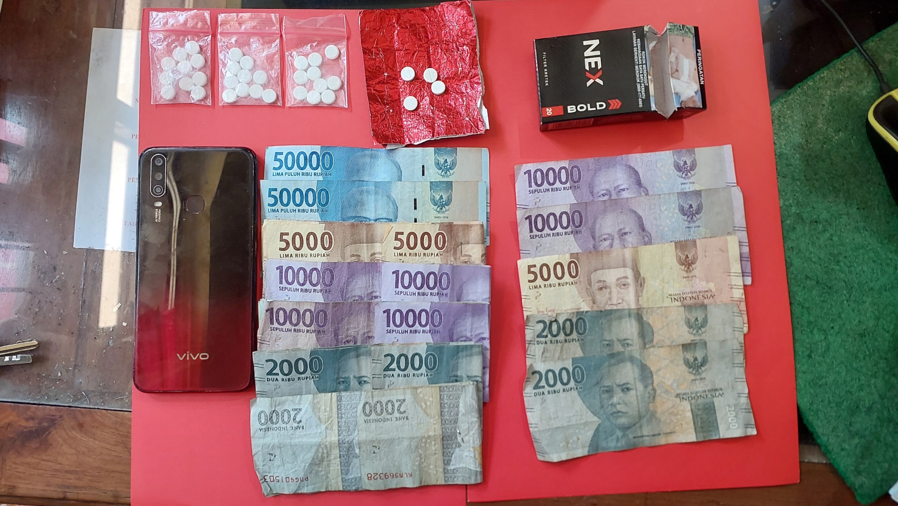 “Petugas kepolisian melakukan penggeledahan didalam rumah TF ditemukan 1.800 butir Pil Trek di dalam kamar tempat tidur tepatnya dibawah kasur dan uang tunai Rp 350 ribu dan sebuah HP milik TF yang dibawa ke Polsek untuk proses lebih lanjut,” ungkapnya.