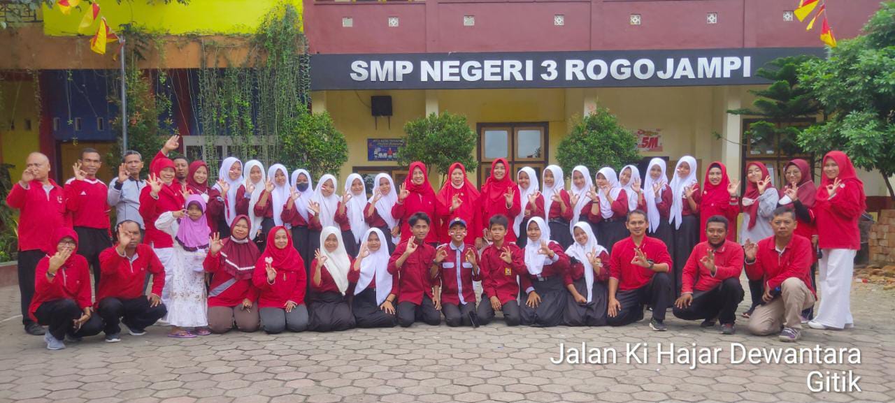 Pada moment ini biasanya masyarakat turut menyemarakkan dengan berbagai ragam acara dan kegiatan dalam rangka memperingati Hari Kemerdekaan Republik Indonesia ke 77 tahun. Antusiasme dan semangat Nasionalisme juga terlihat di SMP Negeri 3 Rogojampi, Kamis tanggal 18 Agustus 2022 menjelang pukul 07.00 WIB dengan iringan lagu-lagu nasional yang menggema dilingkungan sekolah, segenap panitia dan pengurus OSIS mempersiapkan diri, berbagai atribut serta perlengkapan lainnya untuk menggelar lomba memperingati Hari Kemerdekaan Republik Indonesia yang ke 77.