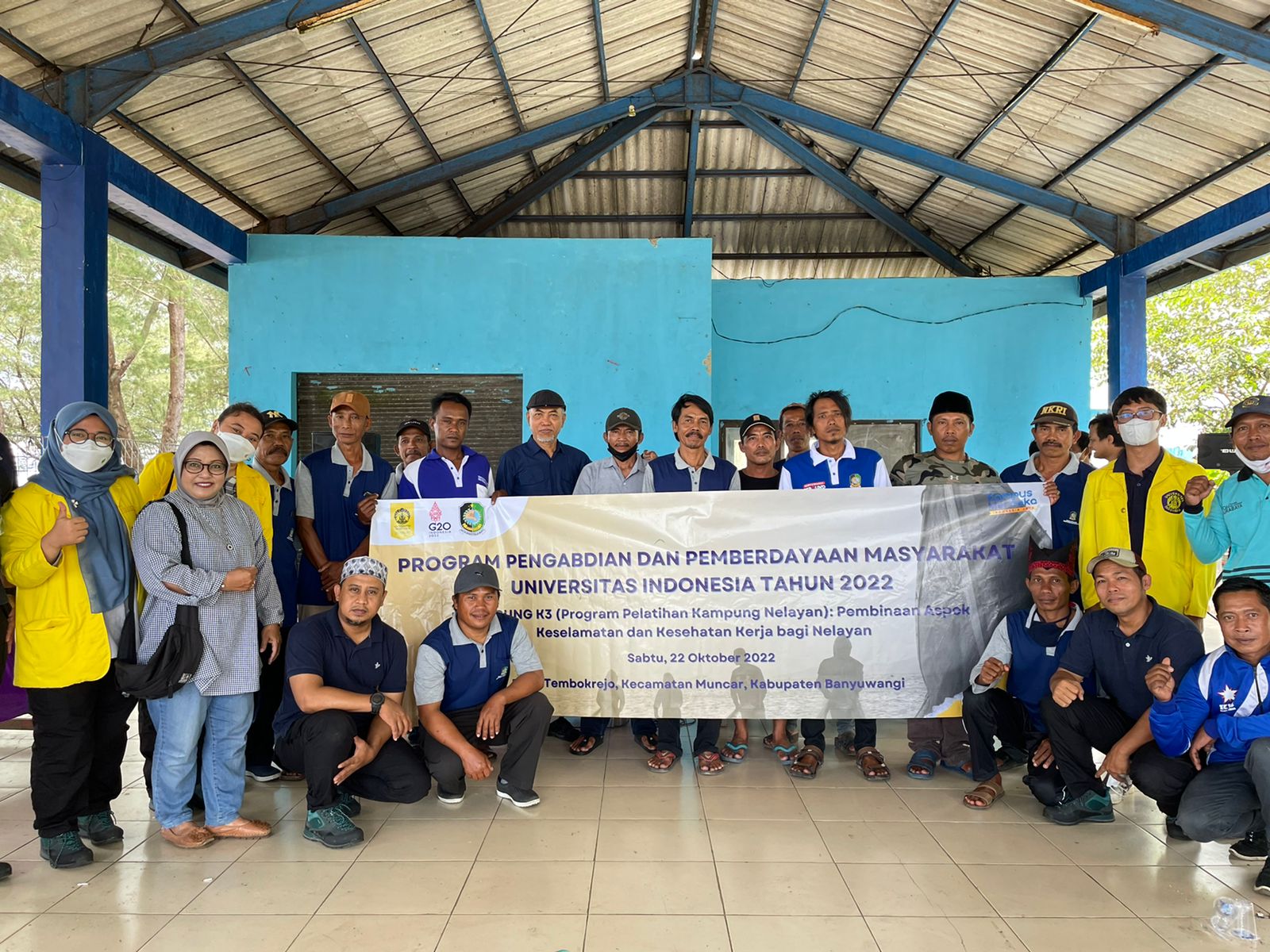 Departemen Keselamatan dan Kesehatan Kerja (K3), Fakultas Kesehatan Masyarakat, Universitas Indonesia. Melaksanakan Pengabdian dan pemberdayaan kepada masyarakat dengan judul: ” PELAMPUNG K3 (Program Pelatihan Kampung Nelayan): Pembinaan Aspek Keselamatan dan Kesehatan Kerja bagi Nelayan sebagai Upaya Menurunkan Risiko Kecelakaan Kerja dan Penyakit Akibat Kerja”. Di Desa Tembokrejo, Aula Pantai Satelit, Kecamatan Muncar. (22/10).