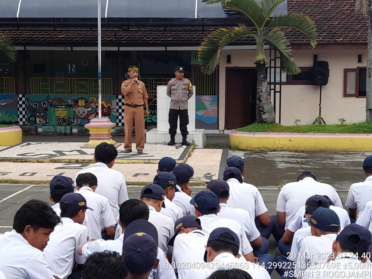 Dalam rangka mengantisipasi kenakalan remaja, Polsek Rogojampi memberikan pembinaan dan penyuluhan (Binluh) kepada siswa-siswi SMP Negeri 2 Rogojampi , AIPDA Dony Yanuar mendatangi Pelajar tingkat SMP di wilayah hukum Kecamatan Rogojampi memberikan binluh kepada Pelajar tingkat SMP diwilayah Kecamatan Rogojampi dan kesempatan hari ini, Jumat 20 Maret 2023.