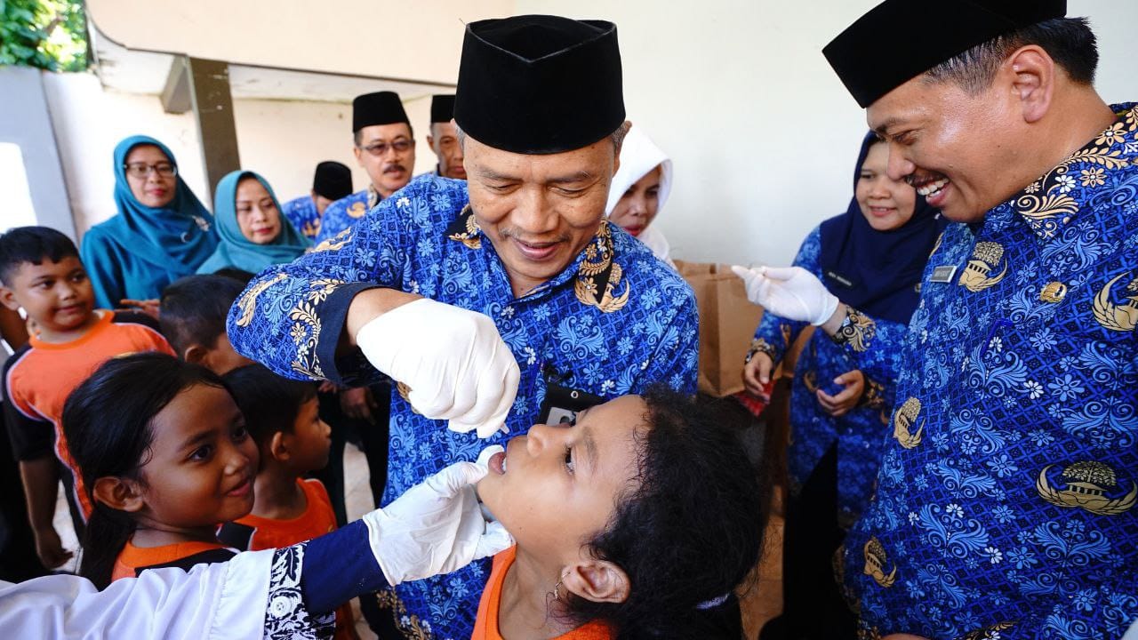 Dimulainya pemberian vaksin polio putaran 2 serentak di Banyuwangi ini secara simbolis dilakukan Asisten Pemerintahan dan Kesra Banyuwangi, Arief Setiawan, bersama Plt Kepala Dinas Kesehatan Banyuwangi, Amir Hidayat, di SDN 1 Klatak, Kecamatan Kalipuro, Senin (19/2/2024).