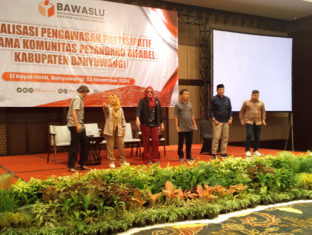 Komisioner Bawaslu Kabupaten Banyuwangi, Khomisa Kurnia Indra, membuka acara yang dihadiri oleh organisasi difabel seperti DMI, PPDI, Pertuni, Difawangi, HWDI, Gerkatin, INAF, Taliwangi, Aura Lentera, serta media komunitas pendukung difabel diantaranya JRKBB dan JRKI.