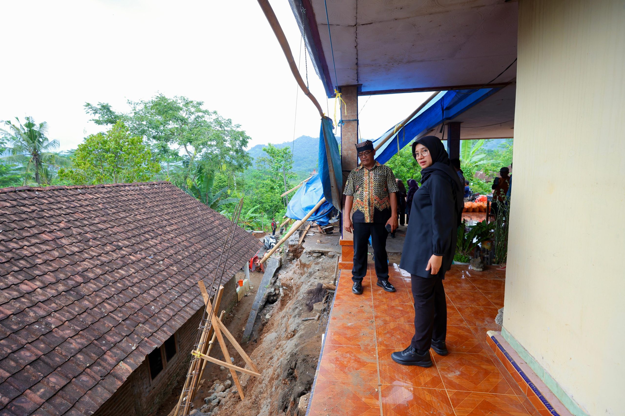 Ipuk mengunjungi korban tanah longsor di Desa Kandangan, Kecamatan Pesanggaran. Hujan deras yang berlangsung selama dua hari mulai 14-15 Desember kemarin menyebabkan longsor yang membuat sejumlah rumah warga mengalami kerusakan.