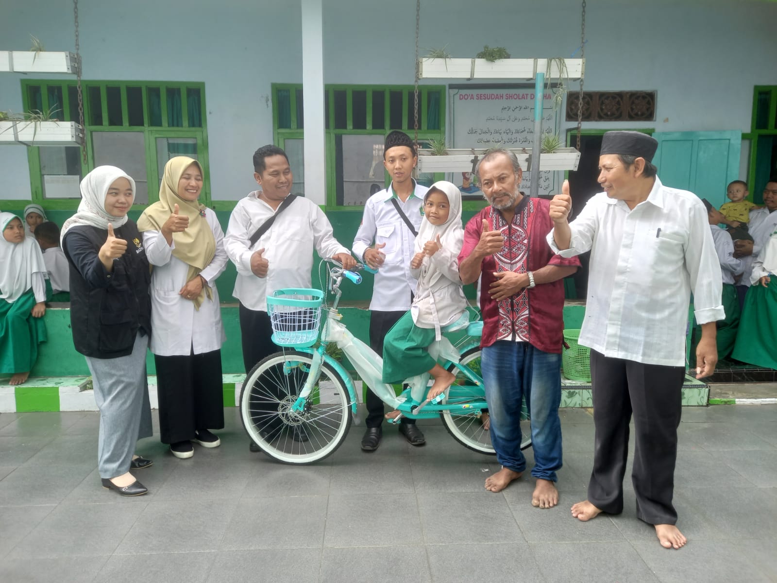 Sementara terlihat bahagia si Ulfi ketika menerima bantuan sepeda mini ini “Terimakasih BAZNAS dan bapak ibu guru semoga lancar usahanya, “ucap Ulfia sembari menaiki sepeda barunnya itu .