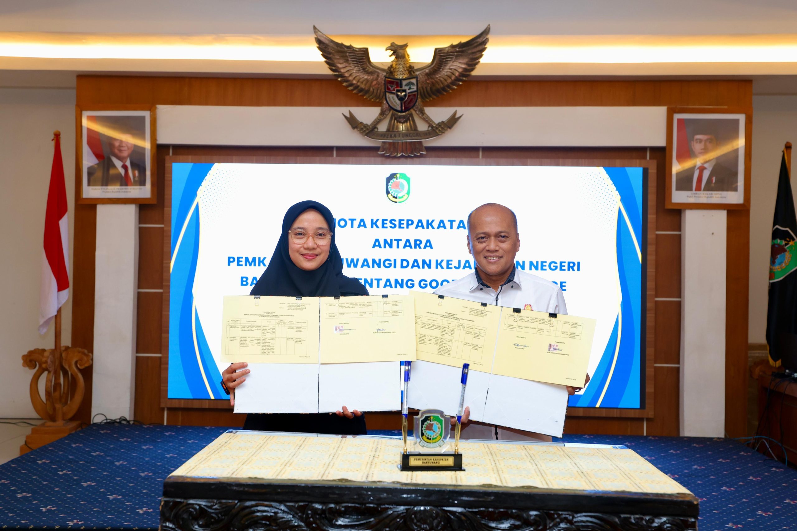 Kerja sama ini diwujudkan melalui penandatanganan perpanjangan nota kesepakatan/Memorandum of Understanding (MoU) tentang penyelenggaraan pemerintahan yang baik (Good Governance) antara Bupati Banyuwangi, Ipuk Fiestiandani, dan Kepala Kejaksaan Negeri Banyuwangi, Suhardjono, di Ruang Rempeg Jogopati, Kamis (24/1/2025).