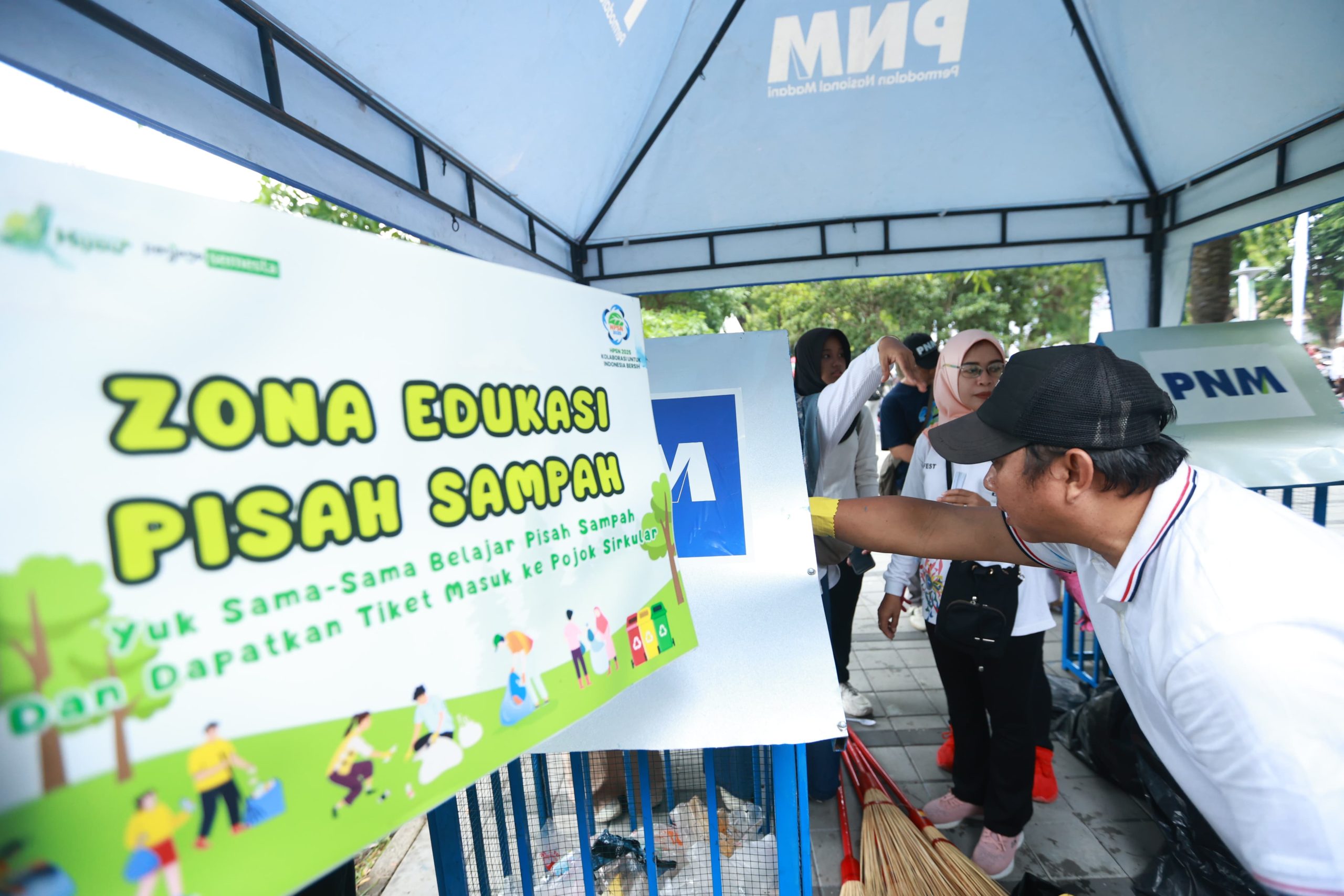 Selain aksi bersih dan pilah sampah di RTH Taman Blambangan, juga digelar edukasi pengelolaan sampah bagi masyarakat, penanganan residu sampah, dan penguatan sistem daur ulang melalui ruang sirkular.