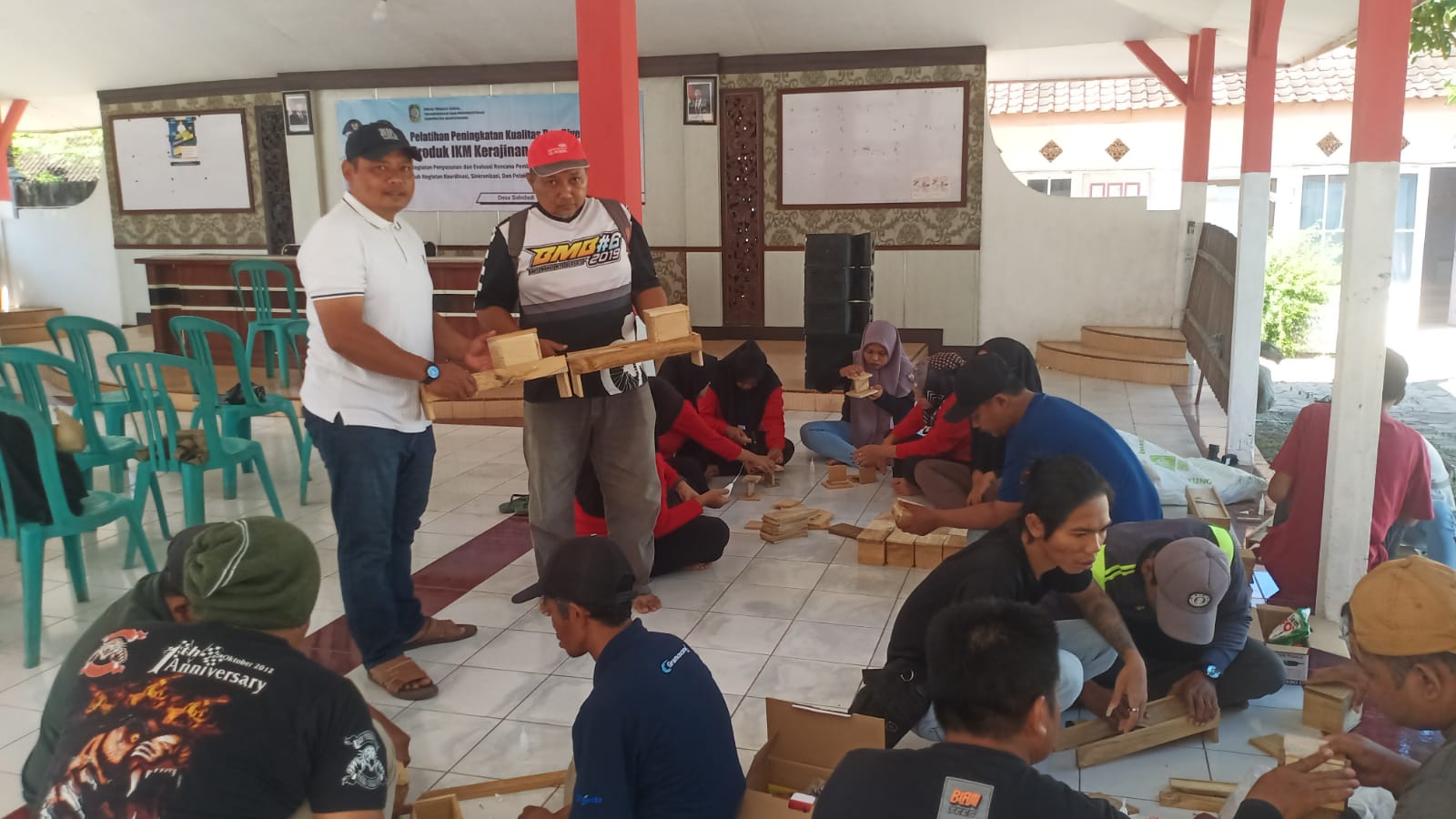 Di bawah bimbingan instruktur dari Banyuwangi, suasana pelatihan berlangsung gayeng dan penuh semangat. Salah satu instruktur, Zainul Abidin (38), menjelaskan bahwa pelatihan difokuskan pada pembuatan pasah karena keterbatasan waktu. “Karena waktunya hanya dua hari, jadi kita fokus pada pembuatan pasah kayu,” ujarnya.