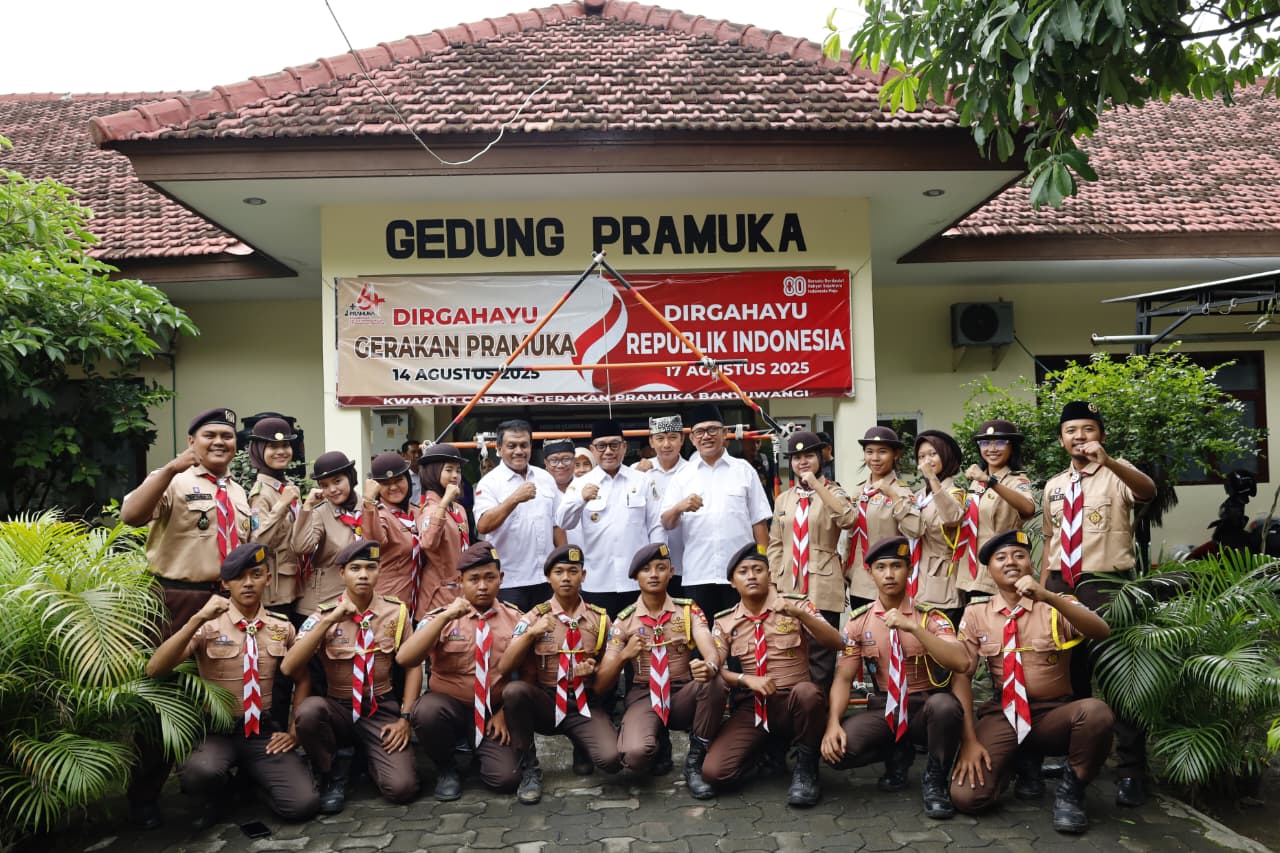 BANYUWANGI – Wakil Bupati Banyuwangi, Mujiono, secara resmi melepas 16 kontingen Pramuka Banyuwangi yang akan berlaga dalam kompetisi Giat Prestasi Pramuka Penegak Jawa Timur 2025. Pelepasan ditandai dengan penyerahan bendera kontingen oleh Wabup kepada pimpinan kontingen di Gedung Pramuka Banyuwangi, Rabu (10/9/2025).