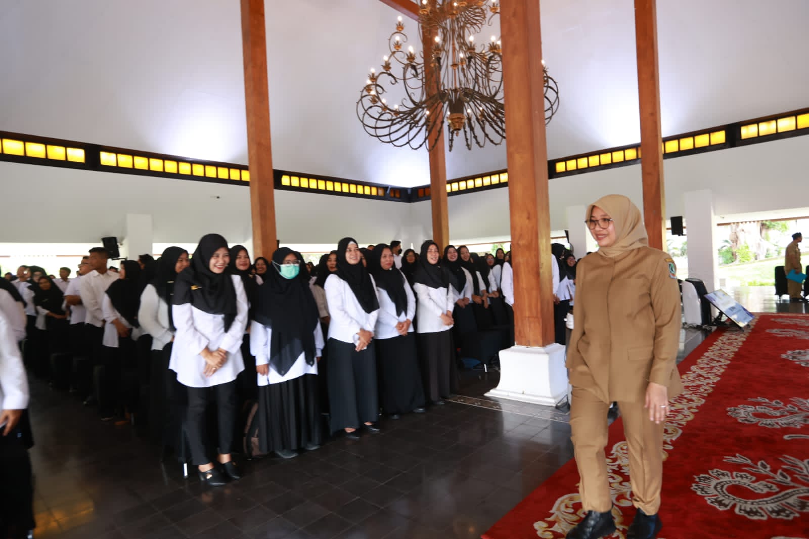 BANYUWANGI – Bupati Banyuwangi Ipuk Fiestiandani mengangkat 4.909 honorer di lingkungan Pemkab Banyuwangi menjadi Pegawai Pemerintah dengan Perjanjian Kerja (PPPK) Paruh Waktu. Mereka terdiri atas guru, tenaga kesehatan dan teknis.