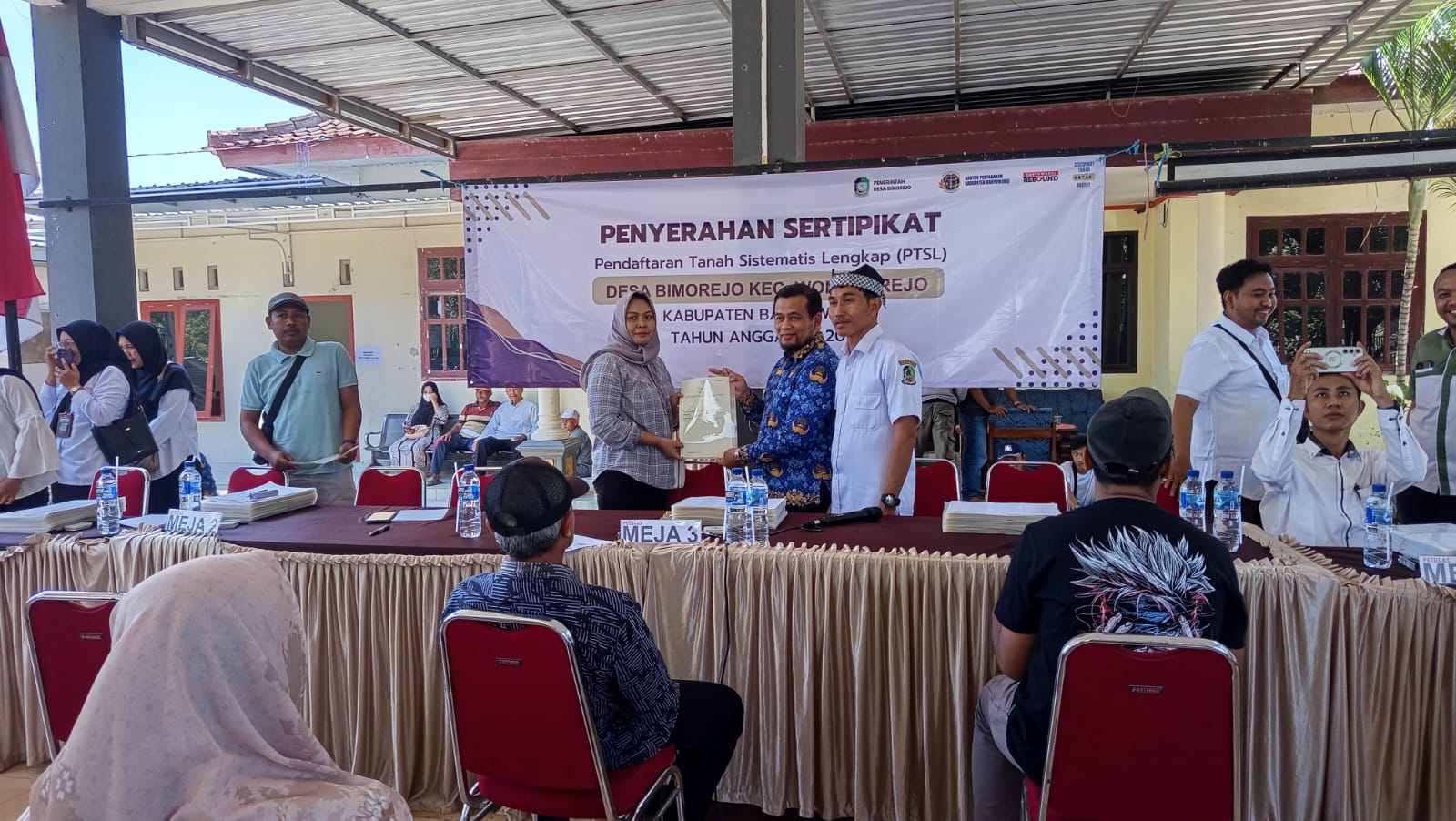 Banyuwangi, Jurnalnews – Ratusan warga Desa Bimorejo, Kecamatan Wongsorejo, tampak berbahagia pada Rabu (1/10/2025). Pasalnya, mereka menerima penyerahan sertifikat tanah secara massal melalui program Pendaftaran Tanah Sistematis Lengkap (PTSL) yang digelar di pendopo desa.