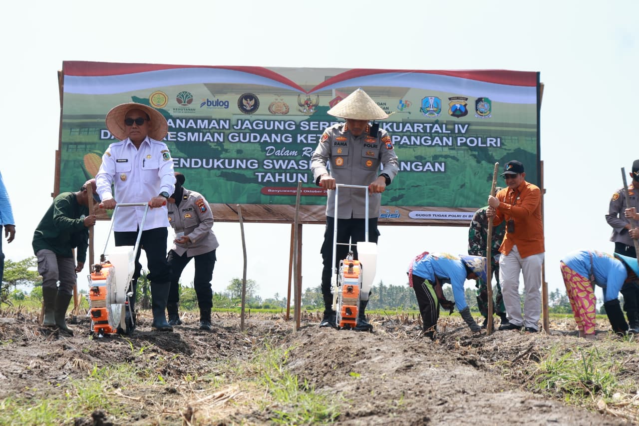 Tanam jagung serentak tersebut dilakukan oleh Wakil Bupati Banyuwangi Mujiono dan Kapolresta Banyuwangi Kombes Pol Rama Samtama Putra bersama petani. Turut mengikuti perwakilan Dandim 0825 Banyuwangi, perwakilan Danlanal dan Bulog Banyuwangi.