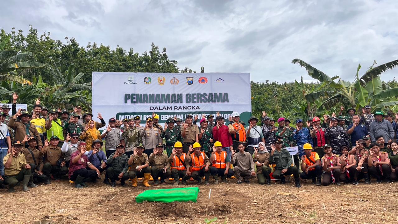 Kegiatan yang mengusung tema ‘Penanaman Bersama Dalam Rangka Mitigasi Resiko Bencana Hidrometeorologi’ ini diikuti ratusan peserta dengan jumlah bibit yang ditanam sebanyak 5.500 plances jenis jati, mahoni dan MPTS (durian, pete, alpukat dan nangka).