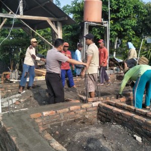 Bhabinkamtibmas Mengikuti Bakti Sosial Membangun Rumah Warga Kurang Mampu Di Desa Karetan