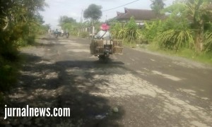 GAMBIRAN – Jalan sepanjang 2.5 Kilometer banyak berlubang dan rusak, jalan rusak itu dimulai dari Dusun Toyamas sampai dusun Mulyorejo Desa Wringinrejo.