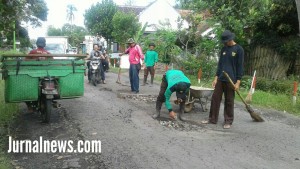 Warga Desa Wringinrejo Bersama PU.Bina Marga Benahi Jalan Berlubang.