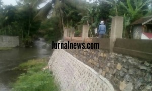 PURWOHARJO – Pembangunan Gronjong penangkis luapan air dikerjakan dibawah jembatan, guna menahan pondasi jembatan agar tidak terkikis air, Proyek tersebut dianggap warga