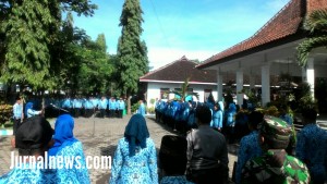 CLURING – Upacara Hari Korpri yang ke – 46 diikuti oleh seluruh unsur Pegawai Negri Sipil (PNS) atau Aparatur Sipil Negara (ASN)