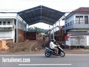 CLURING – Bangunan kontruksi yang memakai baja dan bertembok batu bata diduga belum punya Ijin Mendirikan Bangunan (IMB), bangunan tersebut berlokasi ditepi