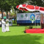 Kepala Kantor Kementerian Agama Kabupaten Banyuwangi Dr. H. Moh. Amak Burhanudin memberikan apresiasi terhadap santri yang bertugas dalam Upacara Hari Santri Nasional
