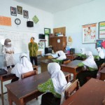 BANYUWANGI – Bupati Banyuwangi Ipuk Fiestiandani mengecek pelaksanaan pembelajaran tatap muka (PTM) dengan berkeliling ke sejumlah sekolah. Mulai pekan ini seluruh sekolah